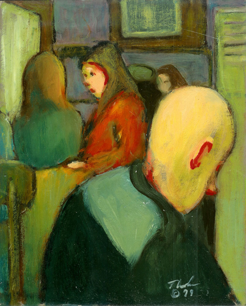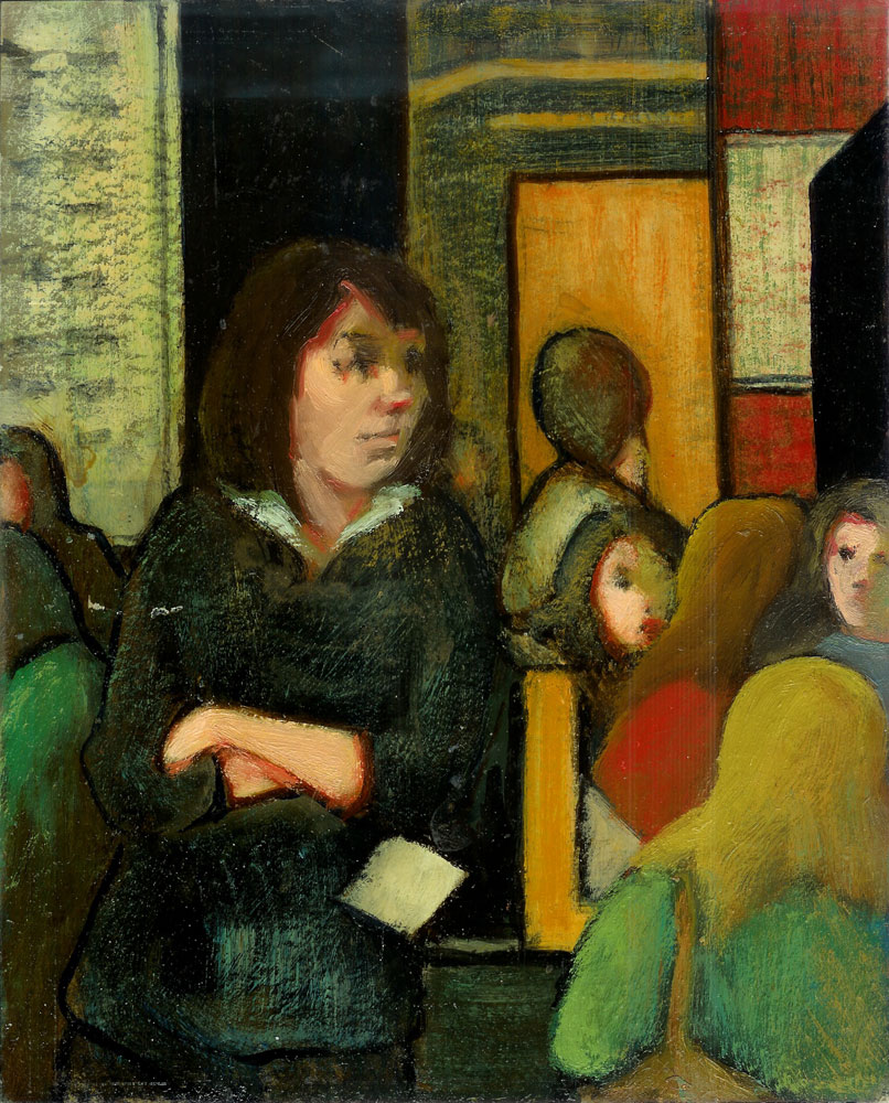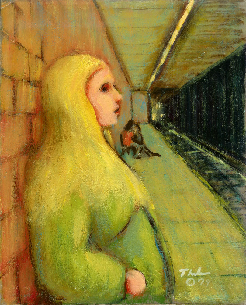 Waiting on the IRT Platform - 10"x8" Oil on Poster Board - 1970s