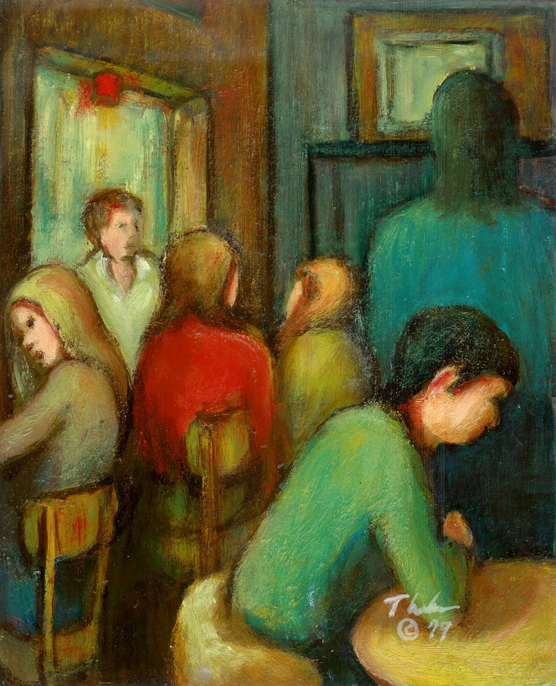 Bar Scene [9] Fanelli's - 10"x8" Oil on Poster Board - 1979
