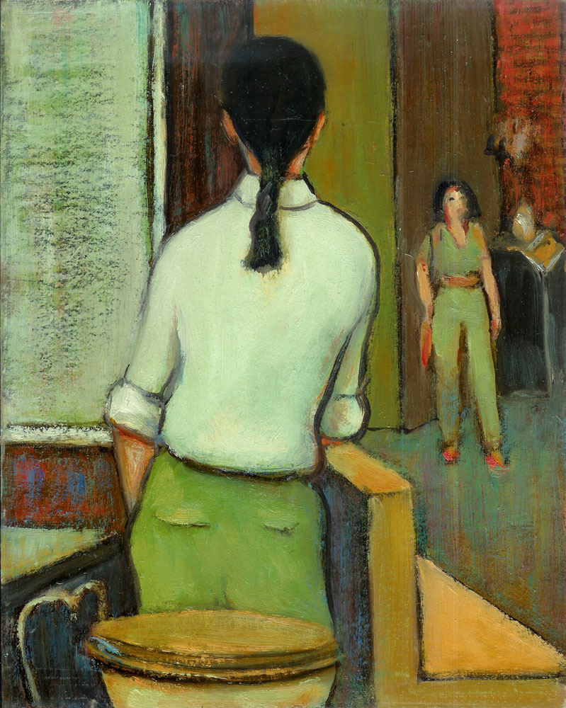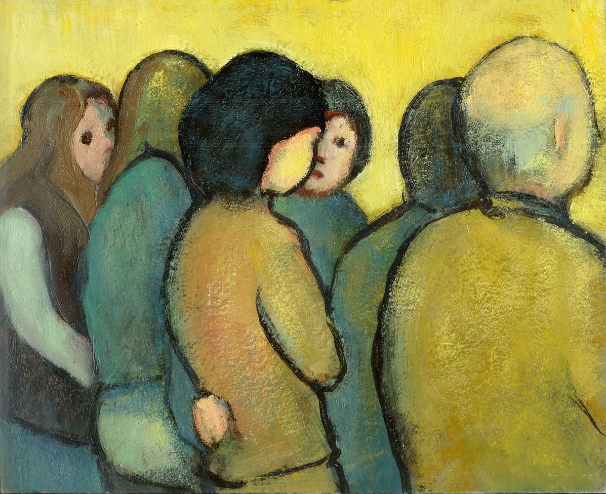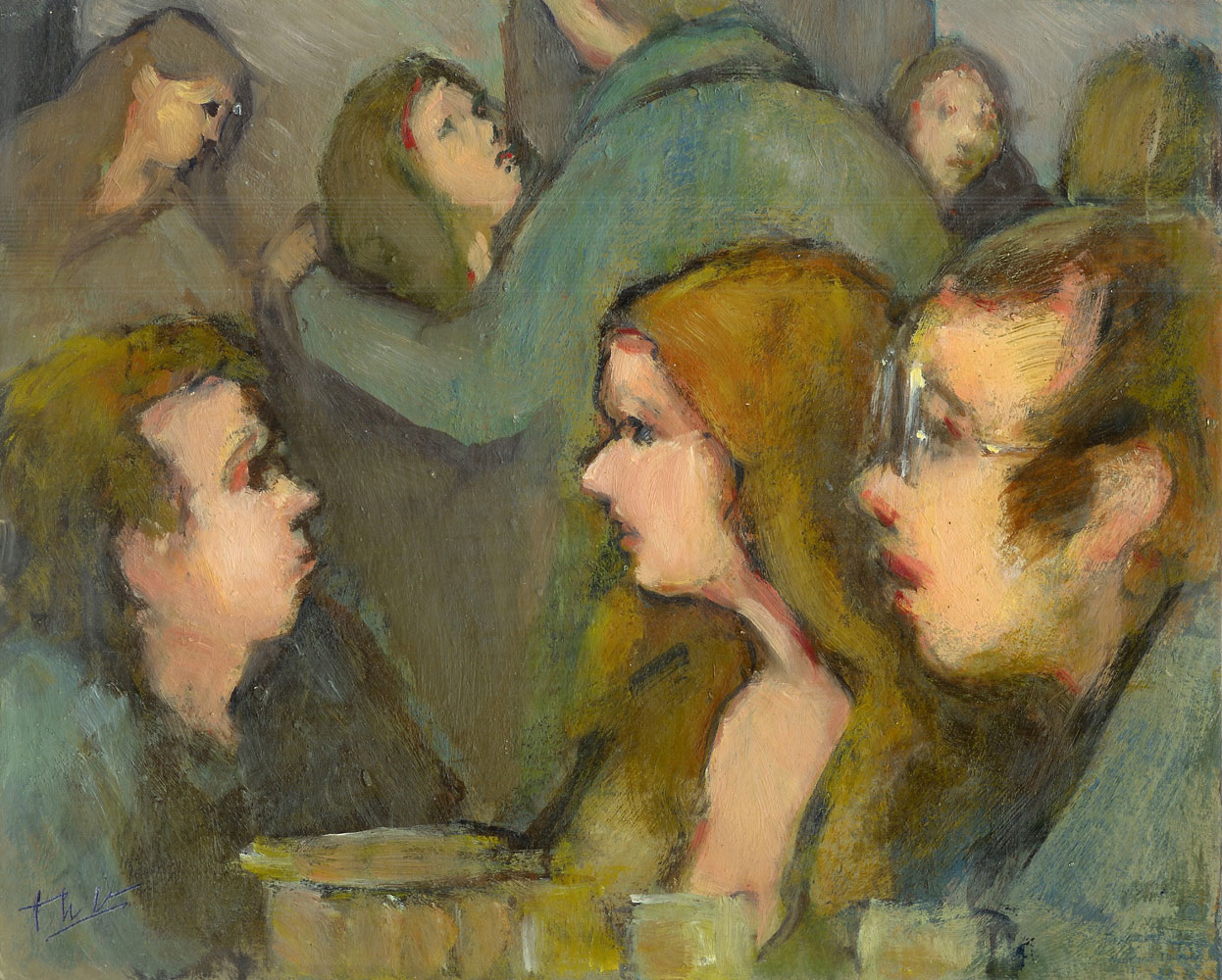 Museum Goers - 8"x10" Oil on Poster Board - 1980's