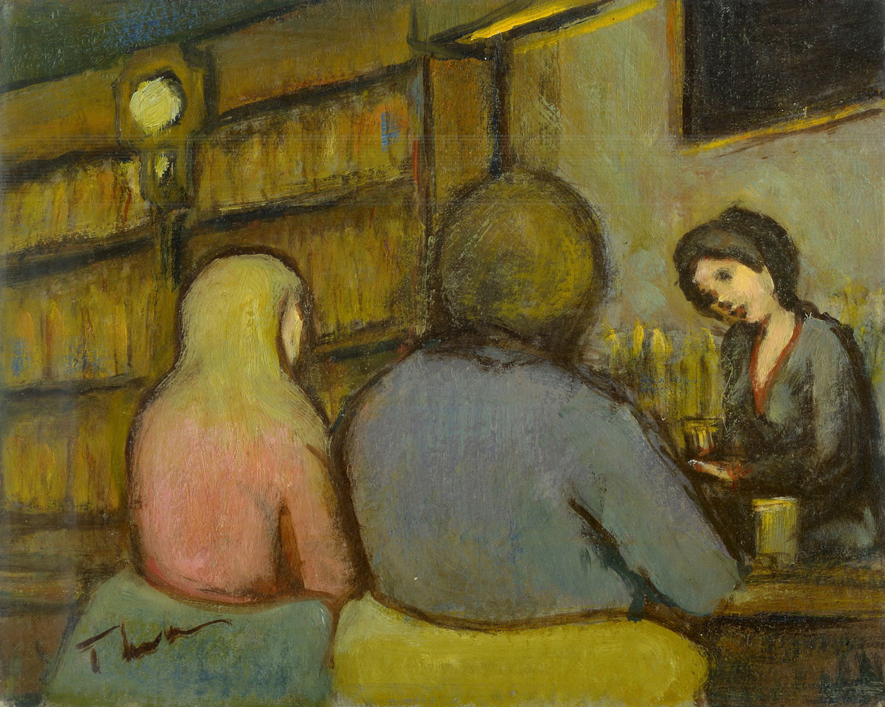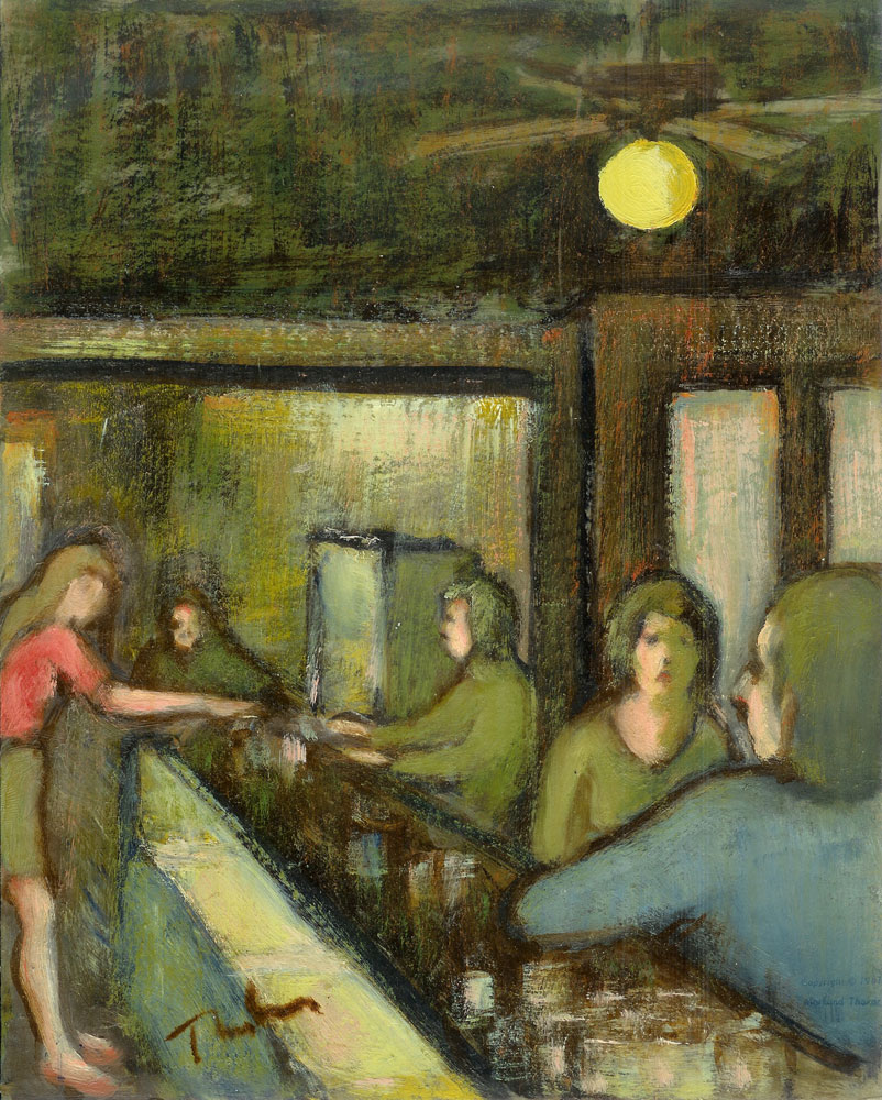 Bar Scene [11] Spring Street Bar - 10"x8" Oil om Poster Board - 1970s
